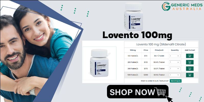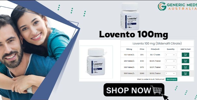 Lovento 100 mg tablets are formulated to deliver consistent, dependable support for men managing erectile dysfunction. Powered by sildenafil citrate, this medication enhances penile blood circulation, promoting firm, sustained erections during intimacy. Known for pharmaceutical-grade standards and reliable effectiveness, it helps restore confidence and performance. Lovento 100 mg tablets form ensures precise dosing and convenient administration. When used responsibly under medical supervision, it can contribute to improved sexual wellness, stronger relationships, and renewed self-assurance. Proper guidance, awareness of contraindications, and healthy habits further optimize results while minimizing potential adverse reactions or complications.